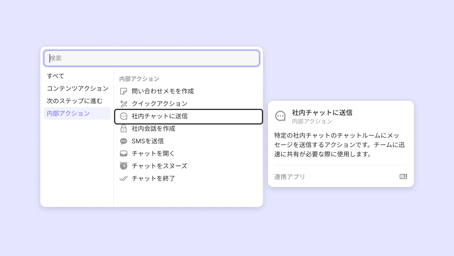 方法:[ワークフロー] - [入力フォームが含まれるステップ] - [アクション] - [社内チャットに送信]
