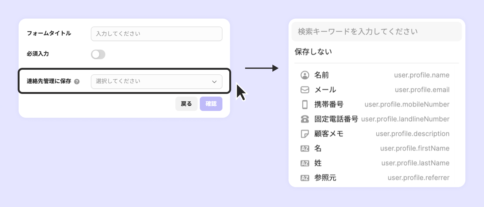 一致しない場合、顧客が情報を入力しても連絡先管理に反映されません。