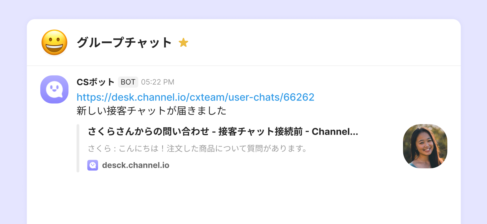 通知を確認後、接客チャットリンクをクリックして顧客とのチャットを開始してください!
