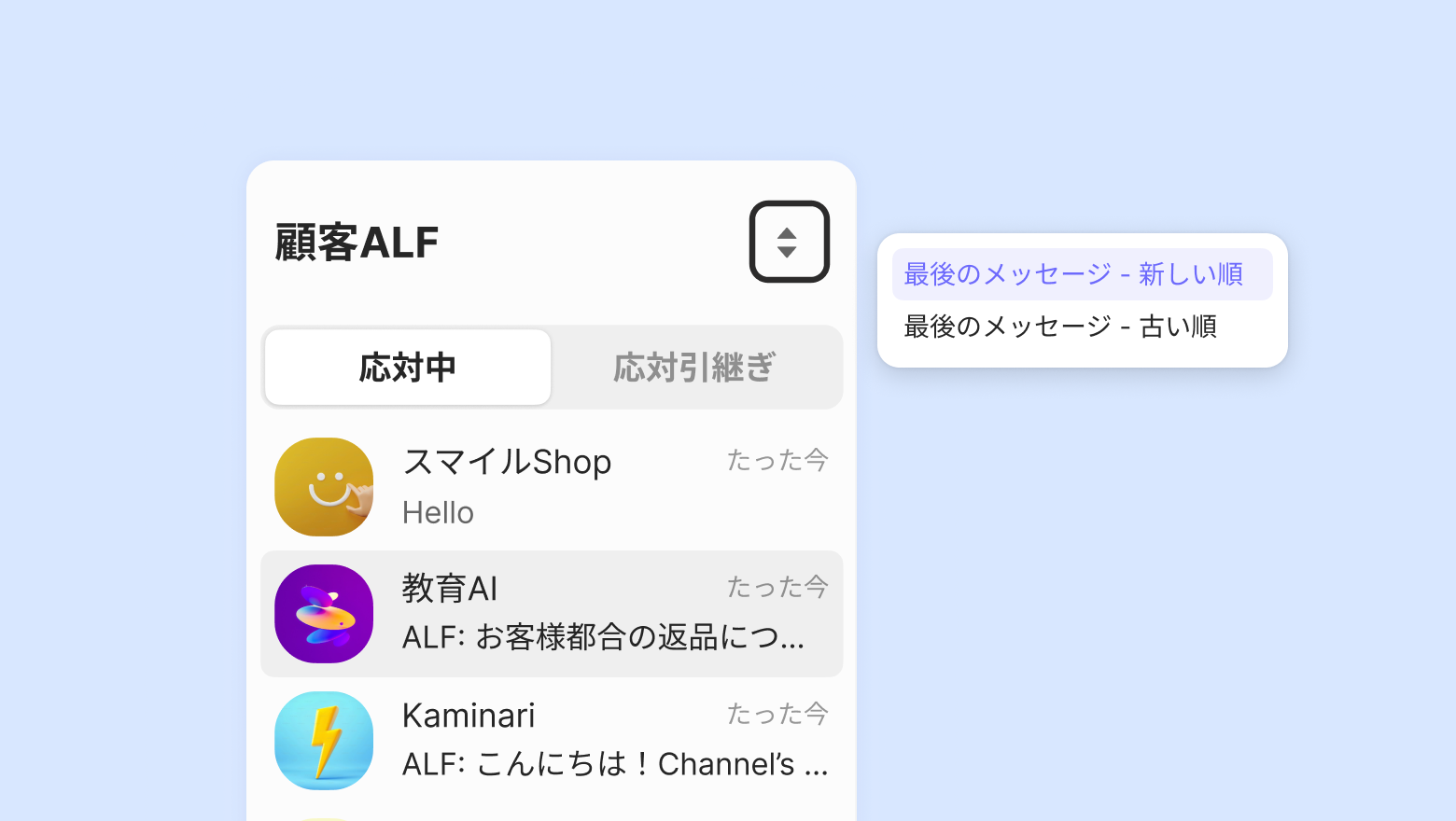 顧客ALFが応対している問い合わせを受信トレイでも確認できます。ALFがどのように回答したかをリアルタイムで確認してください。