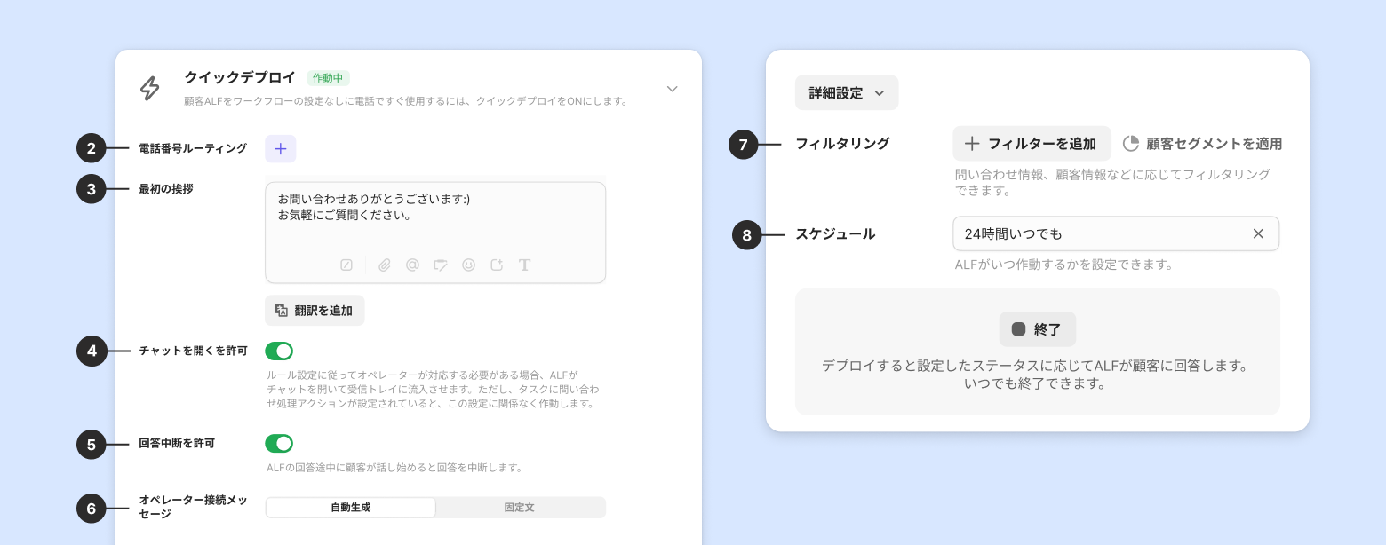 特定の電話番号からALFに接続した際にクイックデプロイが作動するように設定できます。
