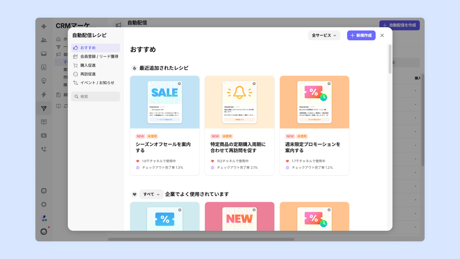 CRMマーケティングのプロが作成した自動配信のレシピを確認しましょう。