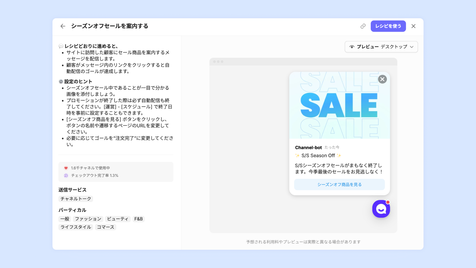 [レシピを使う] をクリックすると自動配信が作成されます。