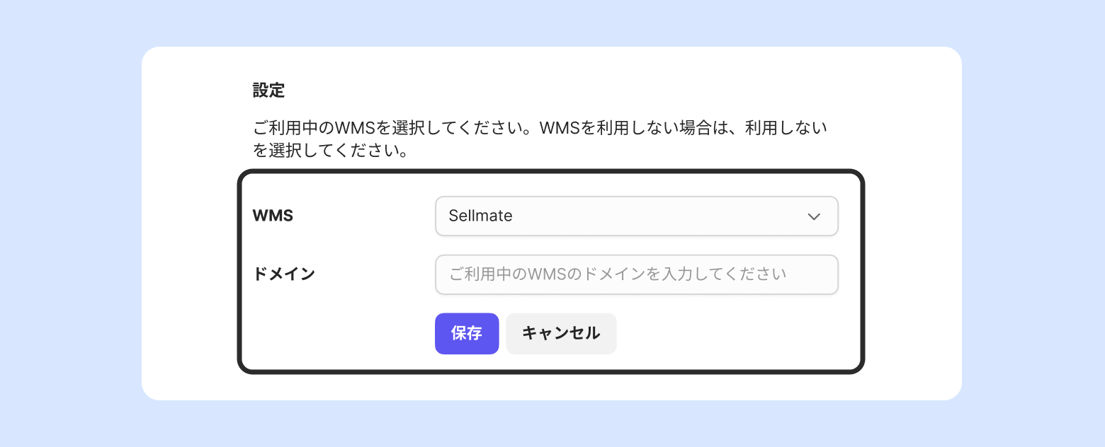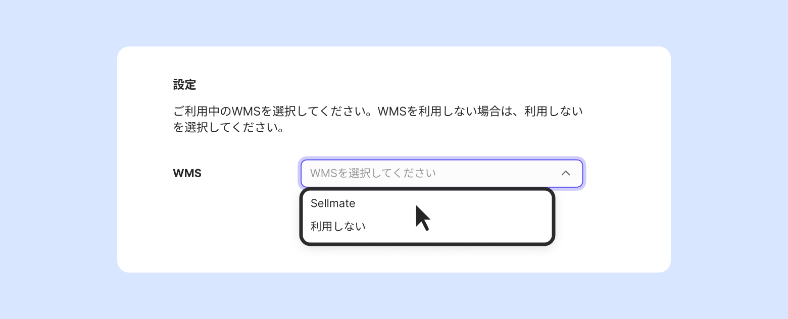 • 現在はSellmateのみご利用いただけます。他のWMSも対応できるように開発予定です。