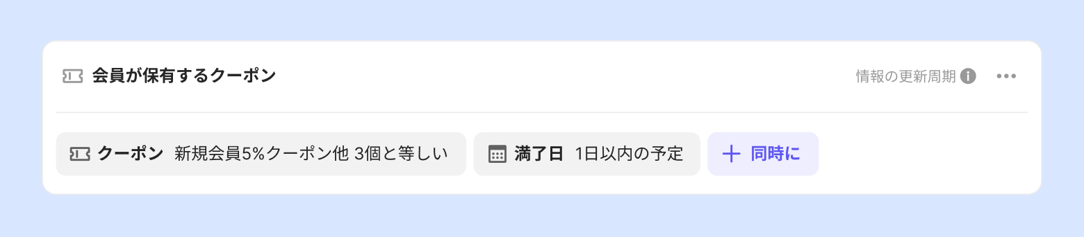 • 特定のクーポンを保有:選択したクーポンを保有しているすべての顧客