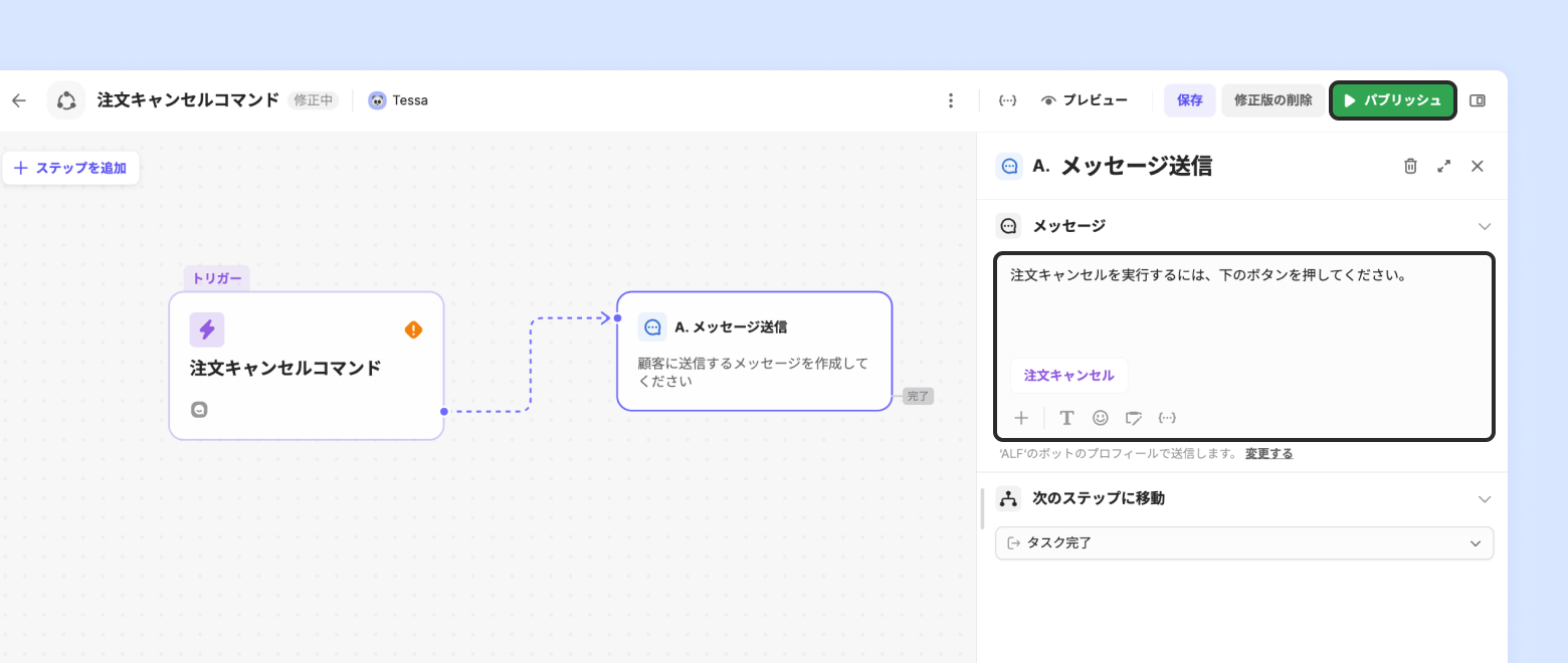• タスク設定画面の右上にある [パブリッシュ] ボタン をクリックすると適用されます。