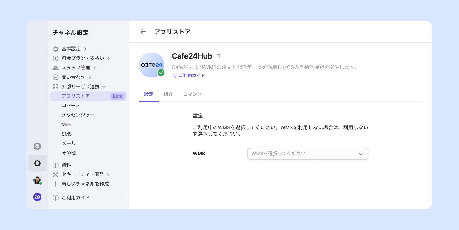 Cafe24 Hubアプリで [WMS] を選択してください。