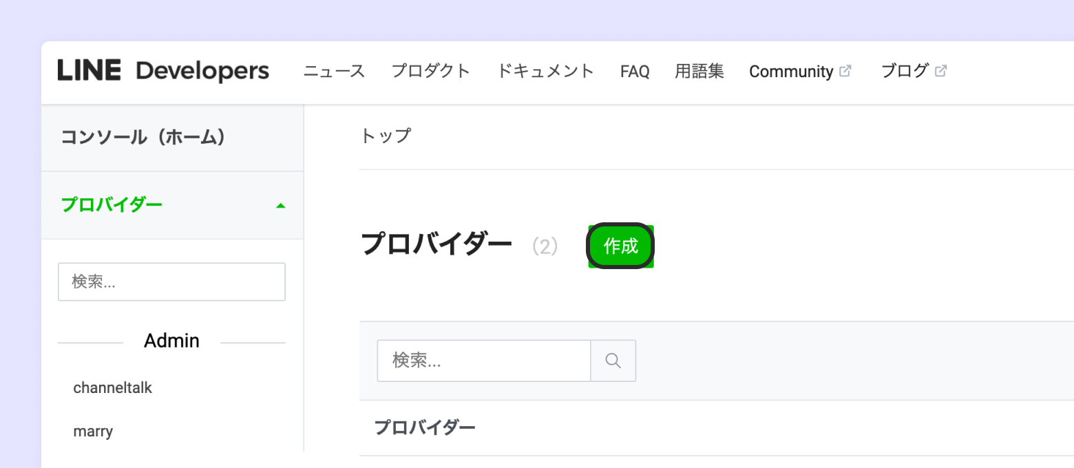 [作成]をクリックし、プロバイダーを作成