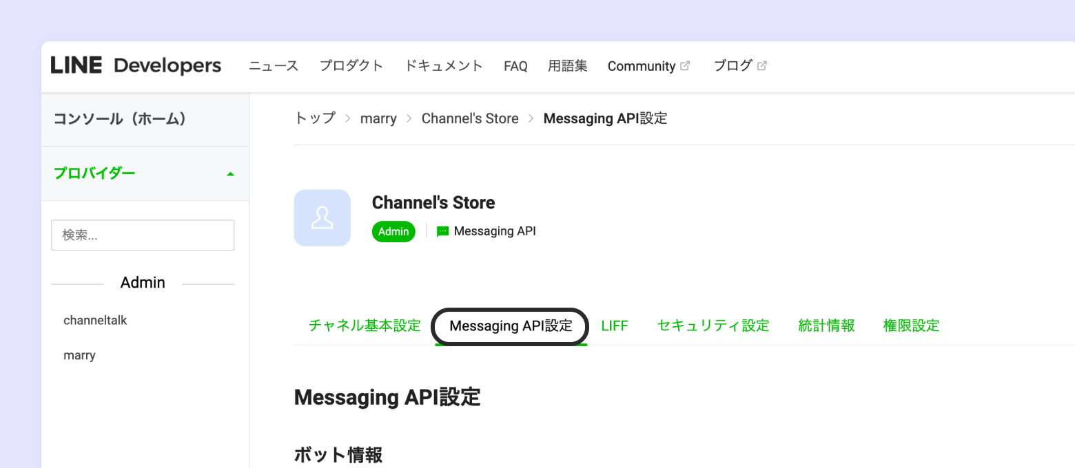 作成したLINE Channelをクリックしてアクセス
