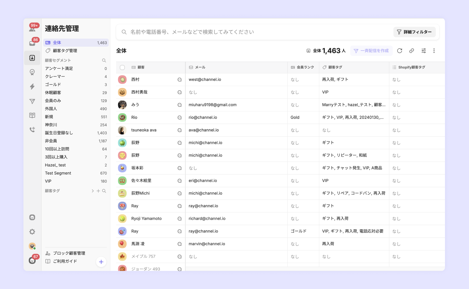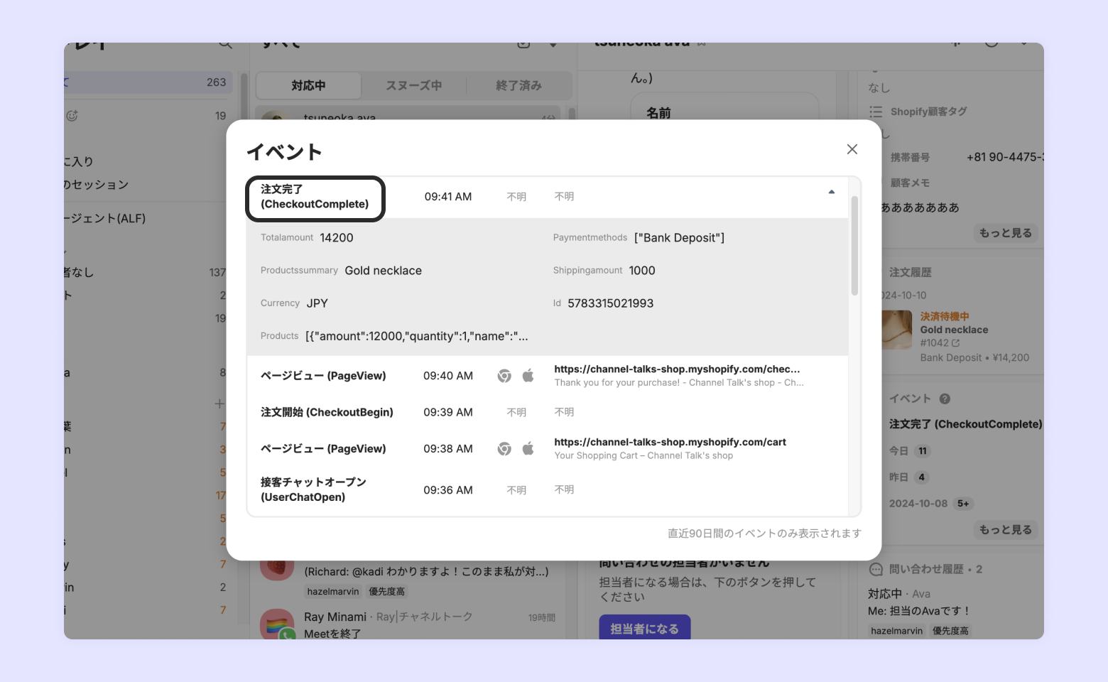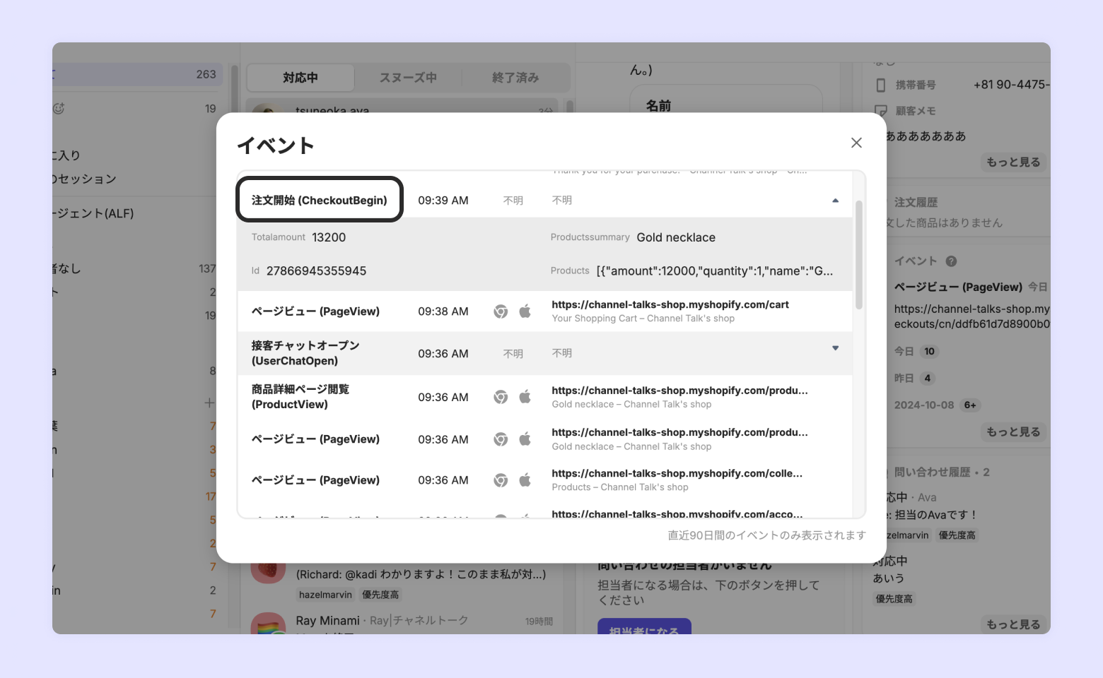 Shopifyから自動で連携できる情報は、チャネルトークを設置した後にサイトにログインした顧客の情報または、注文イベントが発生した顧客の情報です。です。もしチャネルトーク導入前のお客様情報を連携したい場合は、別途インポート作業が必要になります。(→手動インポートを確認する)