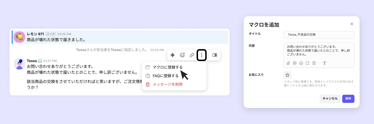 接客チャットで送信したメッセージをマクロとして保存できます。