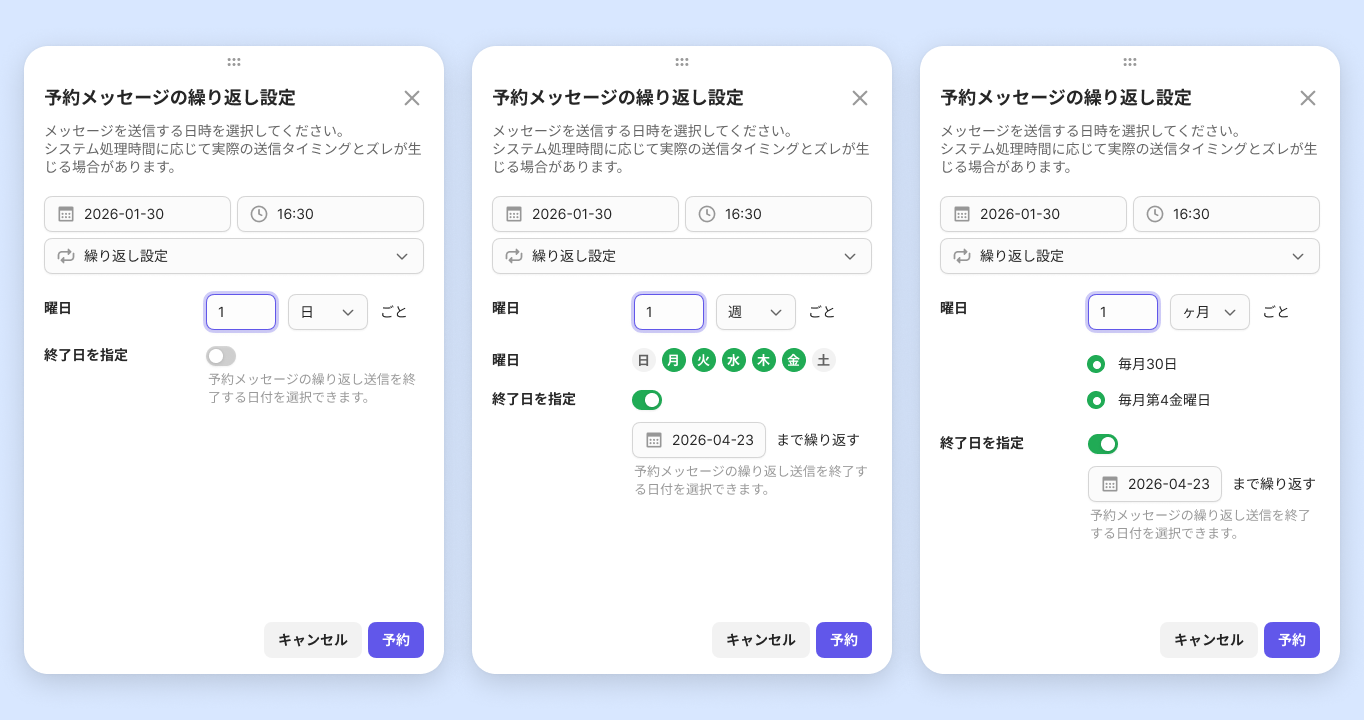 • メッセージ送信予約の繰り返し設定