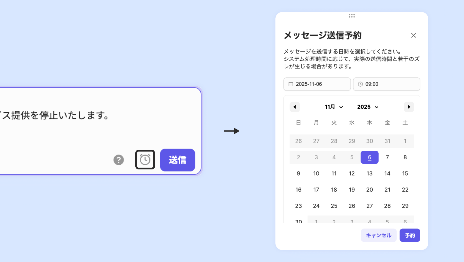 メッセージ送信の予約方法