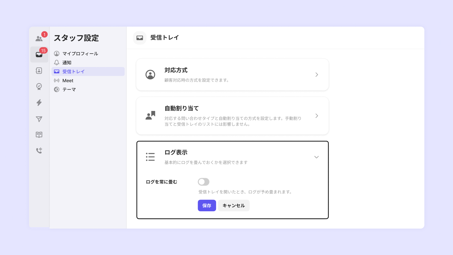 自動割り当てオプション(チャット、電話)と最大自動割り当て数を設置できます。