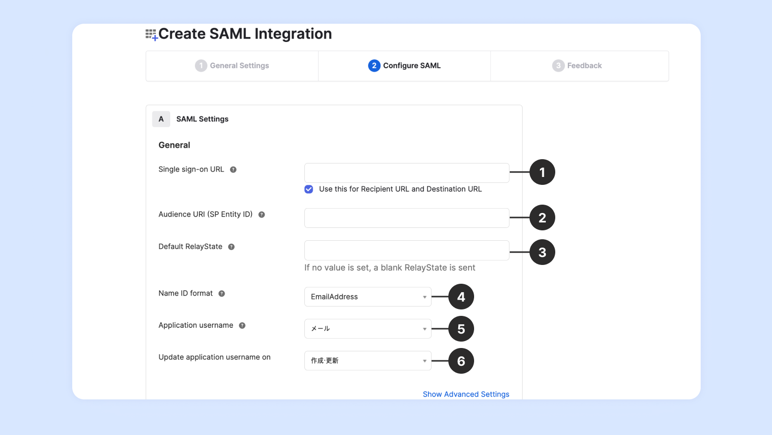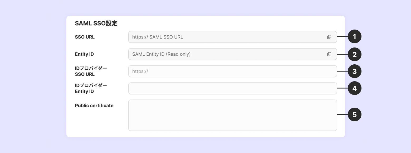 SAML SSOログインを利用するには以下の3つの項目を設定する必要があります。