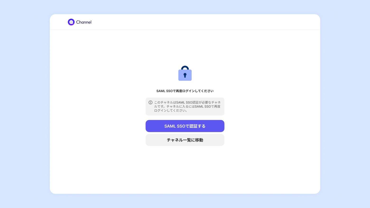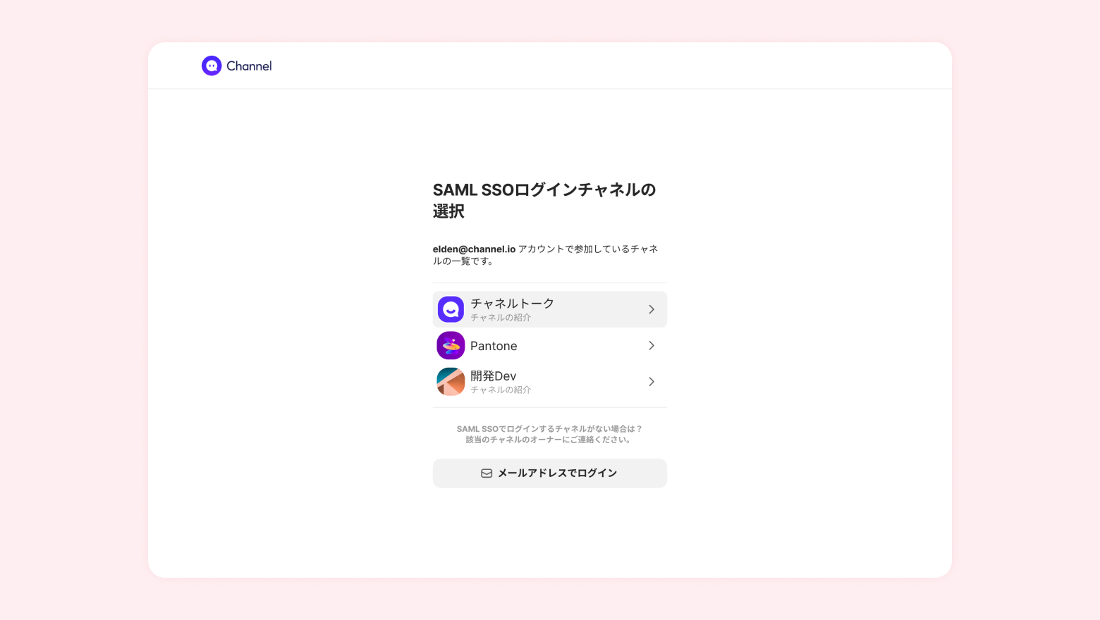 • 該当のチャネルでSAML SSOログインの設定がされていると一覧に表示されます。