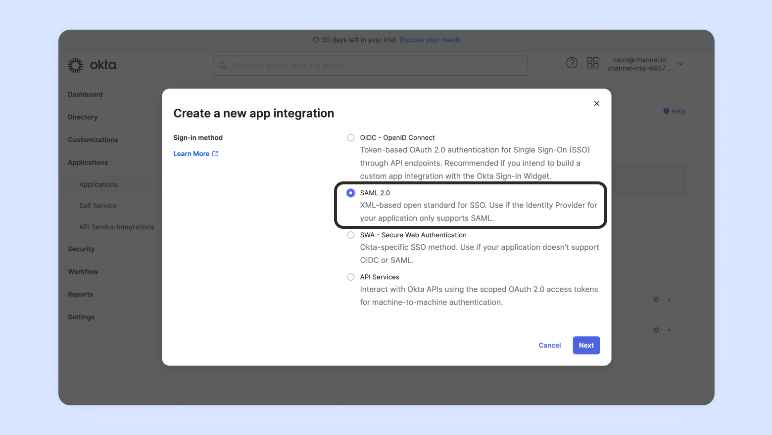 1. SAML 2.0を選択
