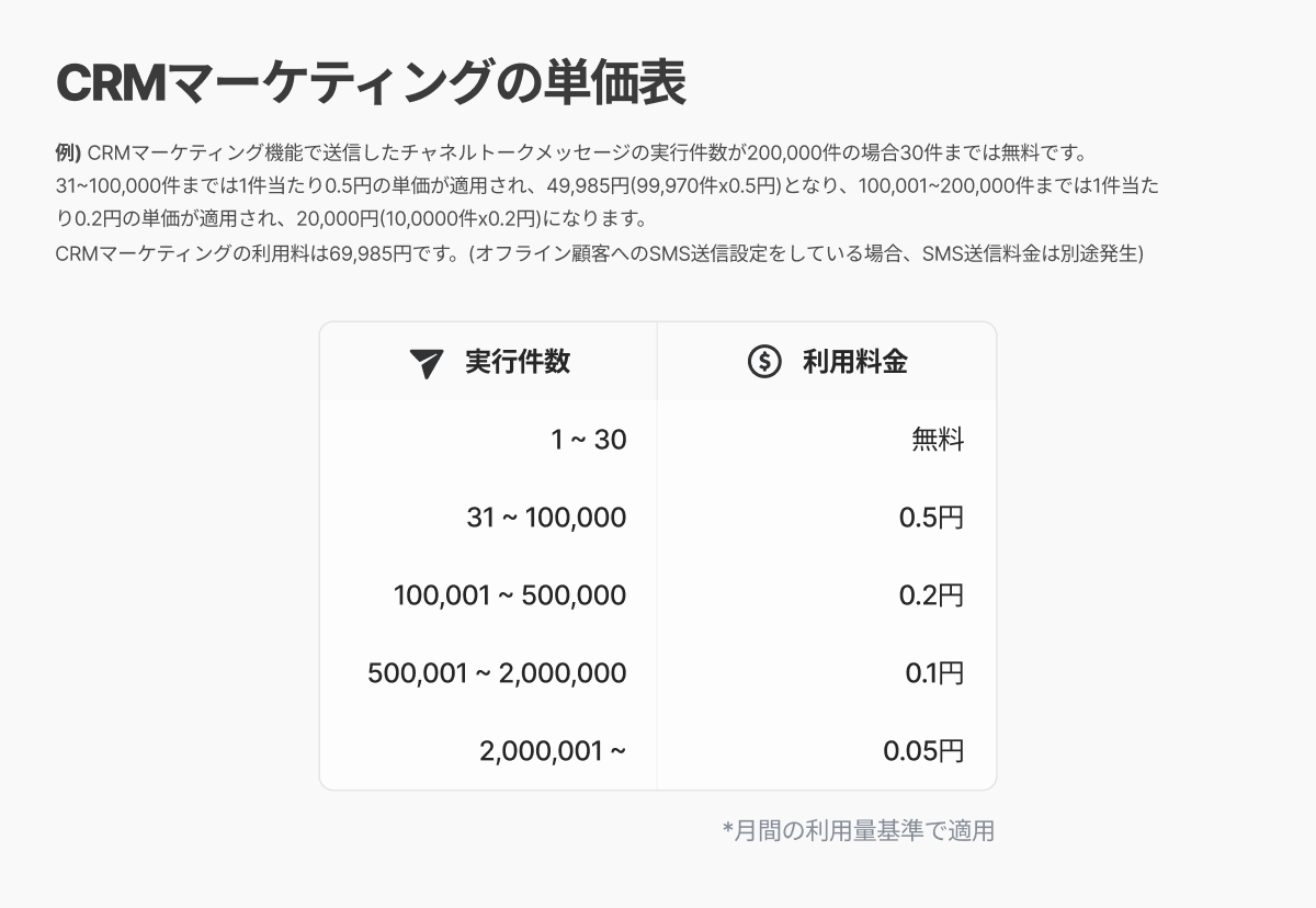 連絡先管理に保存されている顧客数が多ければ多いほど、単価は安くなります。