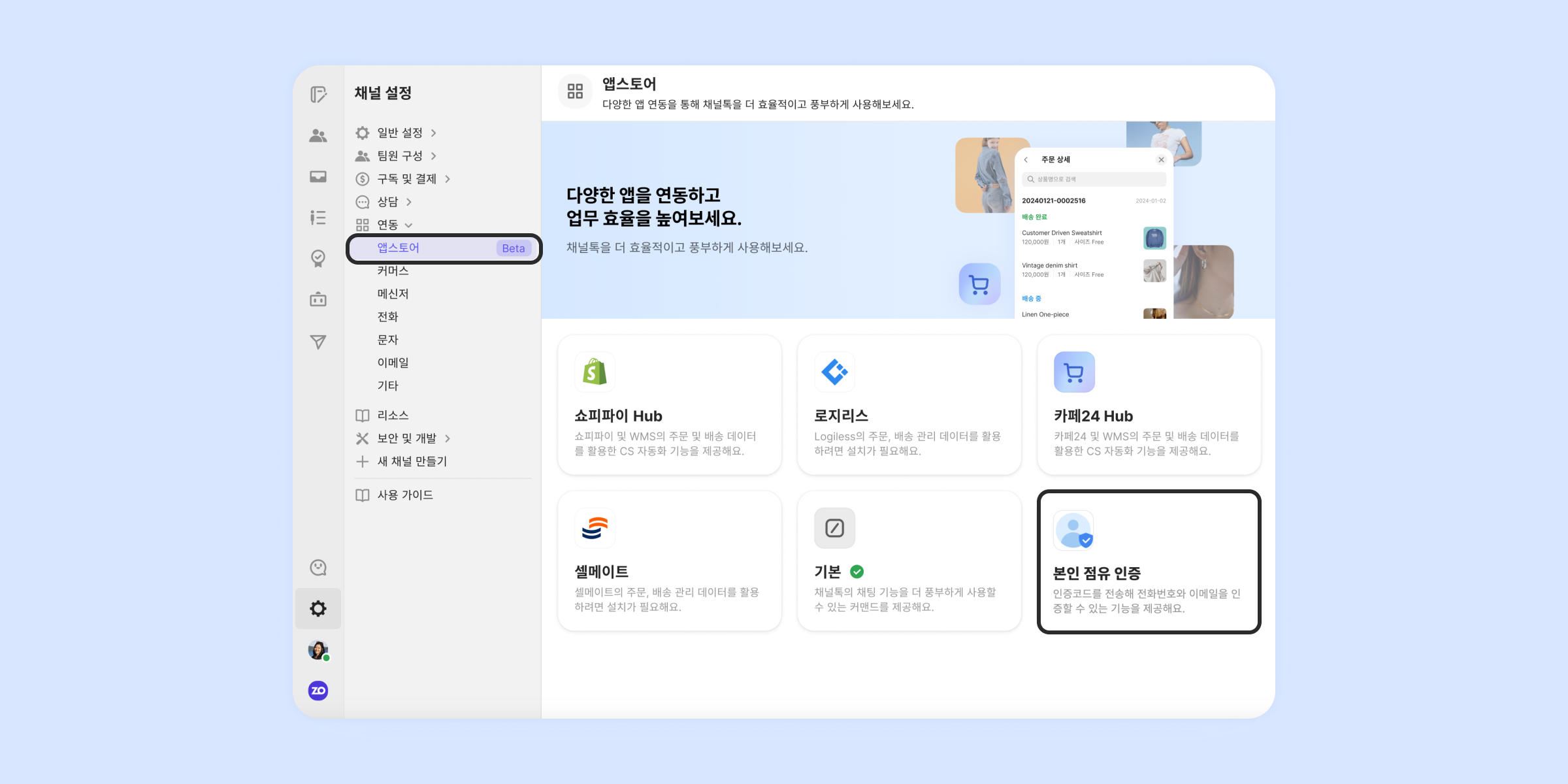 [채널설정] > [앱스토어] > [본인 점유 인증] > [설치하기] 클릭