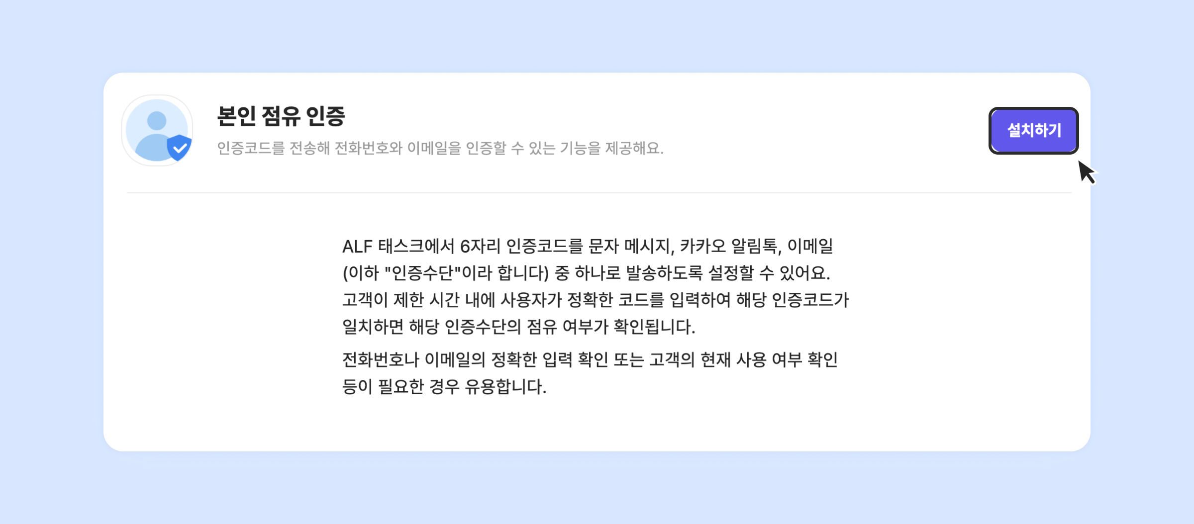 본인 점유 인증 앱은 ALF 태스크 내 함수단계에서만 사용이 가능합니다.