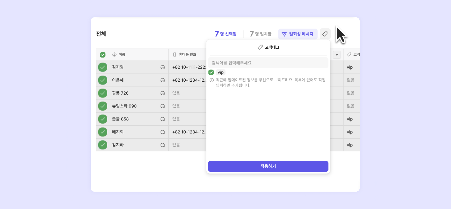 고객 연락처에서 단순 검색과 고객 분류까지 쉽게 설정하고 다양하게 활용할 수 있어요.