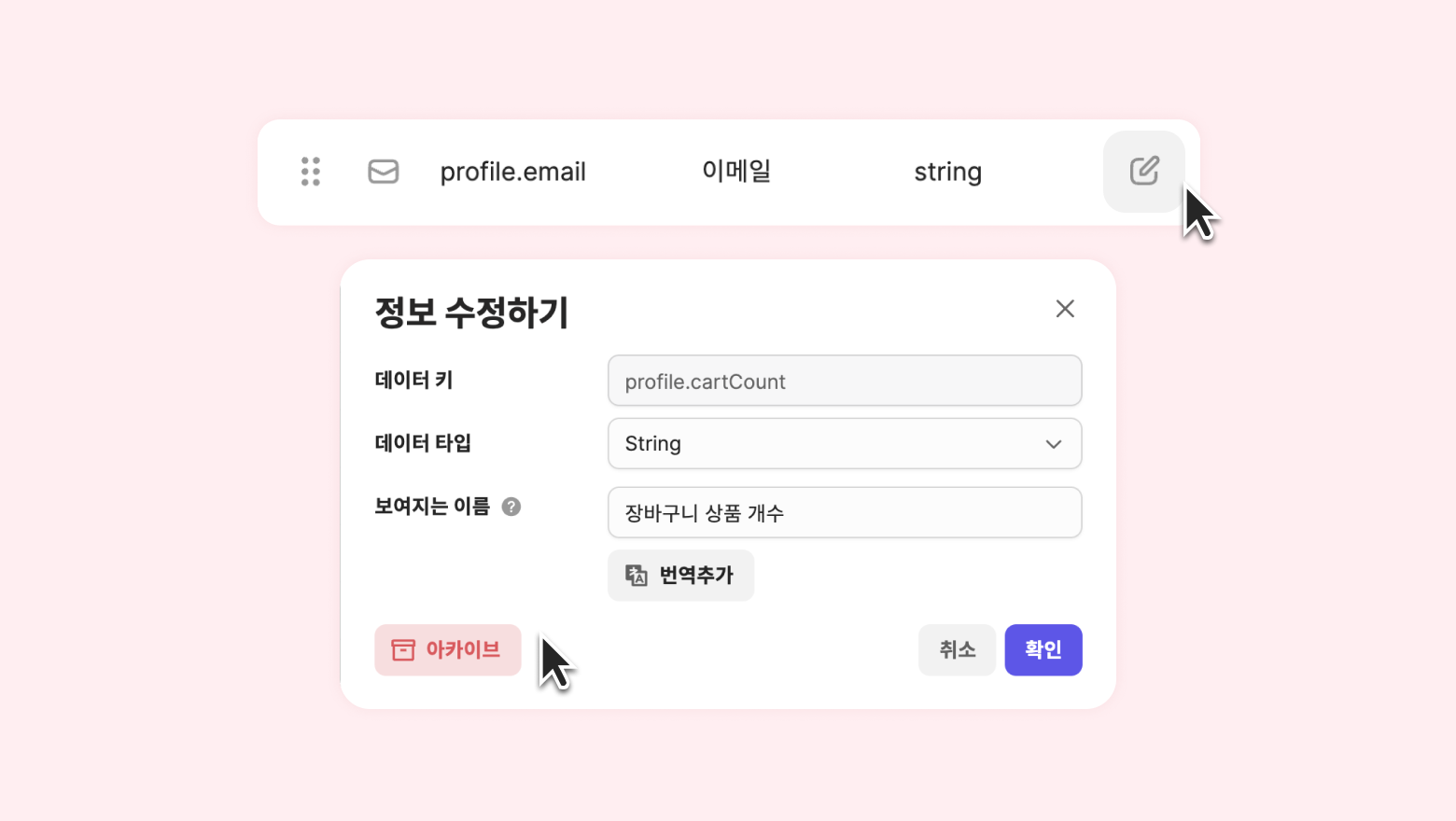 • 아카이빙으로 전환된 데이터 값은 더 이상 수집되지 않습니다. 고객 연락처나 유저챗 고객 정보에서도 보이지 않아요.