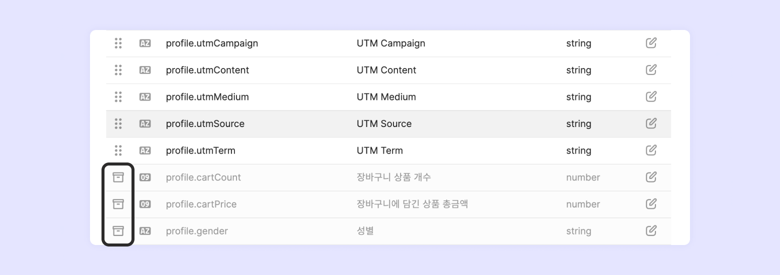 • lastSeenAt (최근 접속 시간): 고객이 마지막 방문한 시점을 기준으로 필터링할 때
