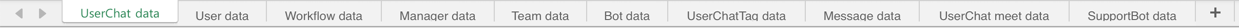 UserChat data | 설정한 기간의 유저챗 Id, 상담 정보 및 처리 시간 정보 등 |