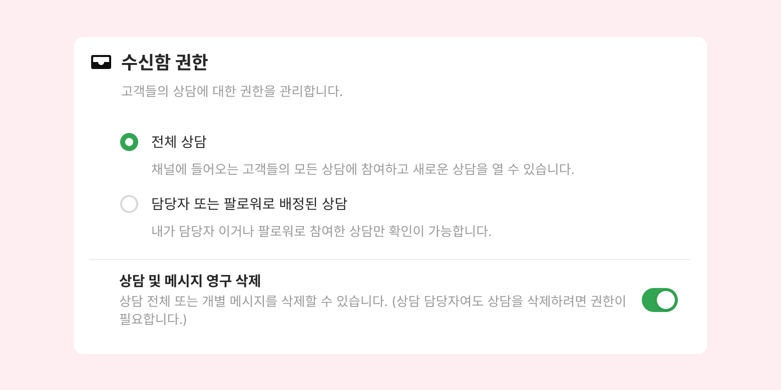 상담 전체 또는 개별 메시지를 삭제할 수 있는 권한