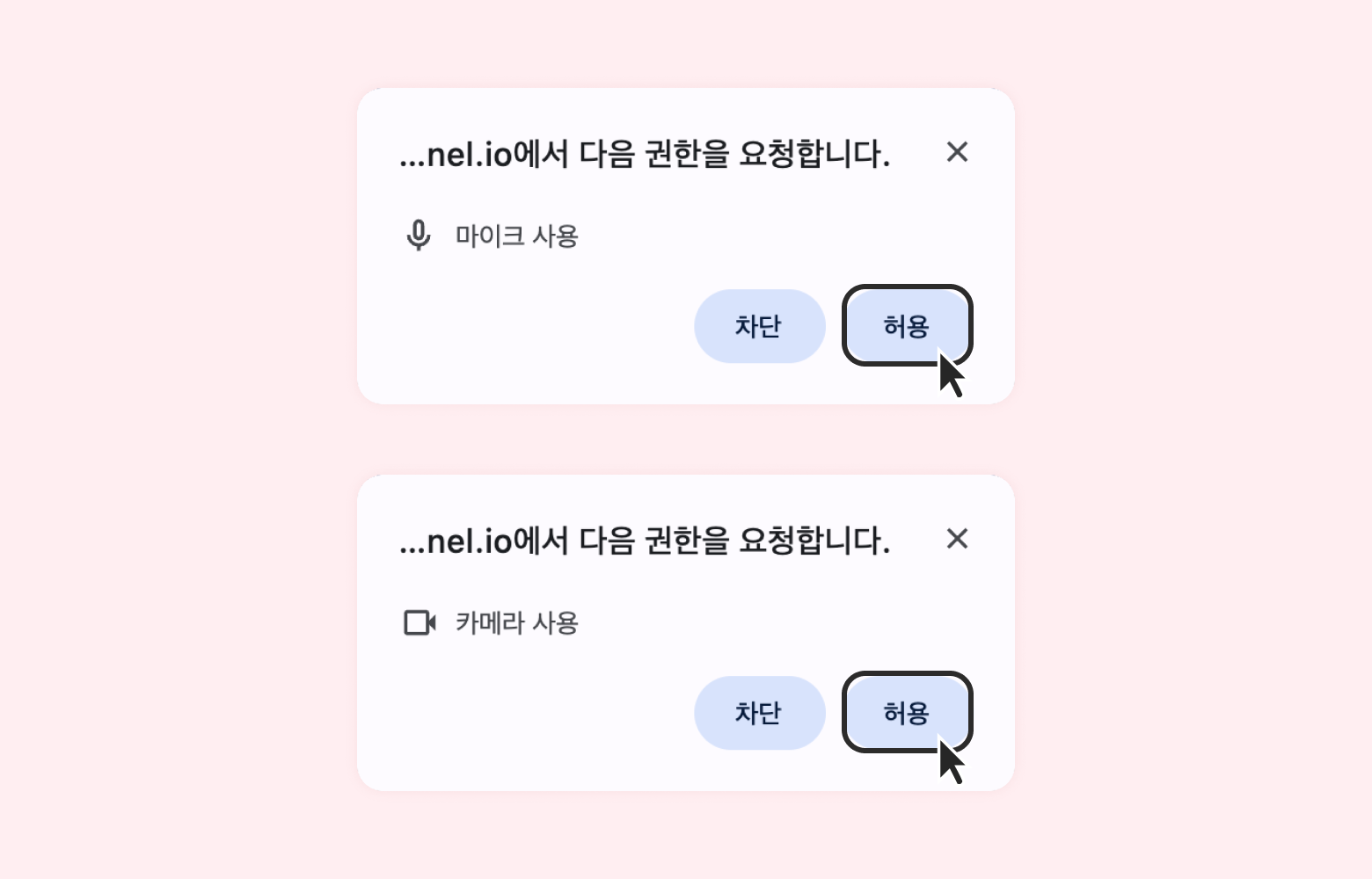 [마이크], [카메라]를 클릭하여 각각 액세스 권한을 허용해 주세요.