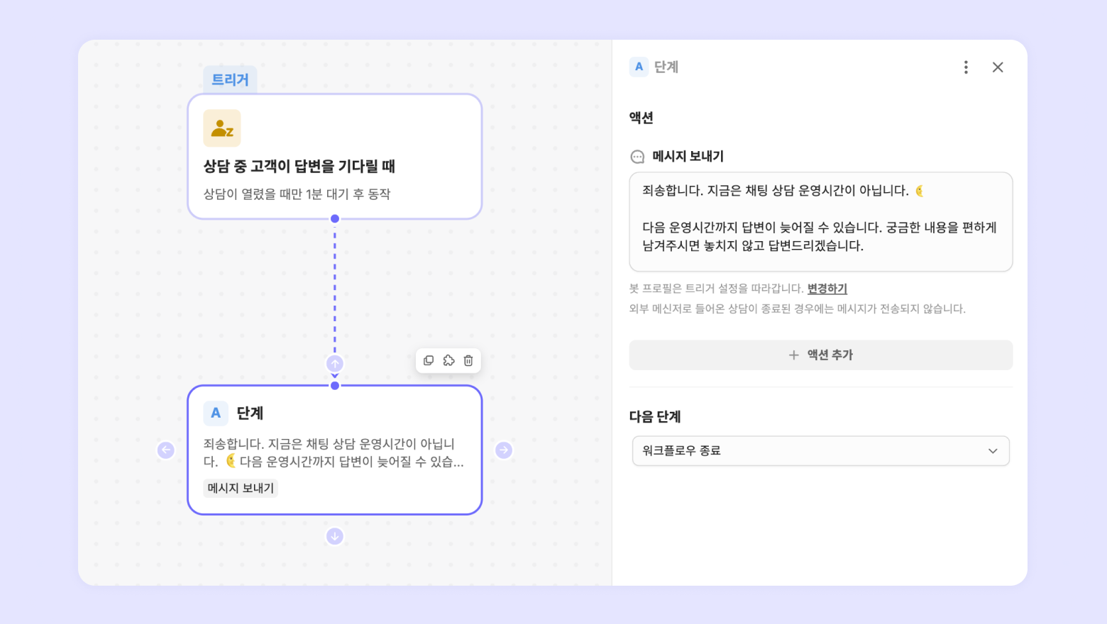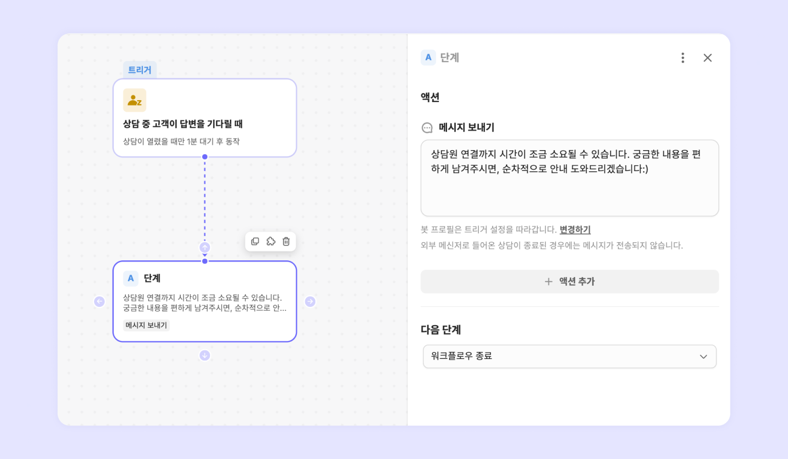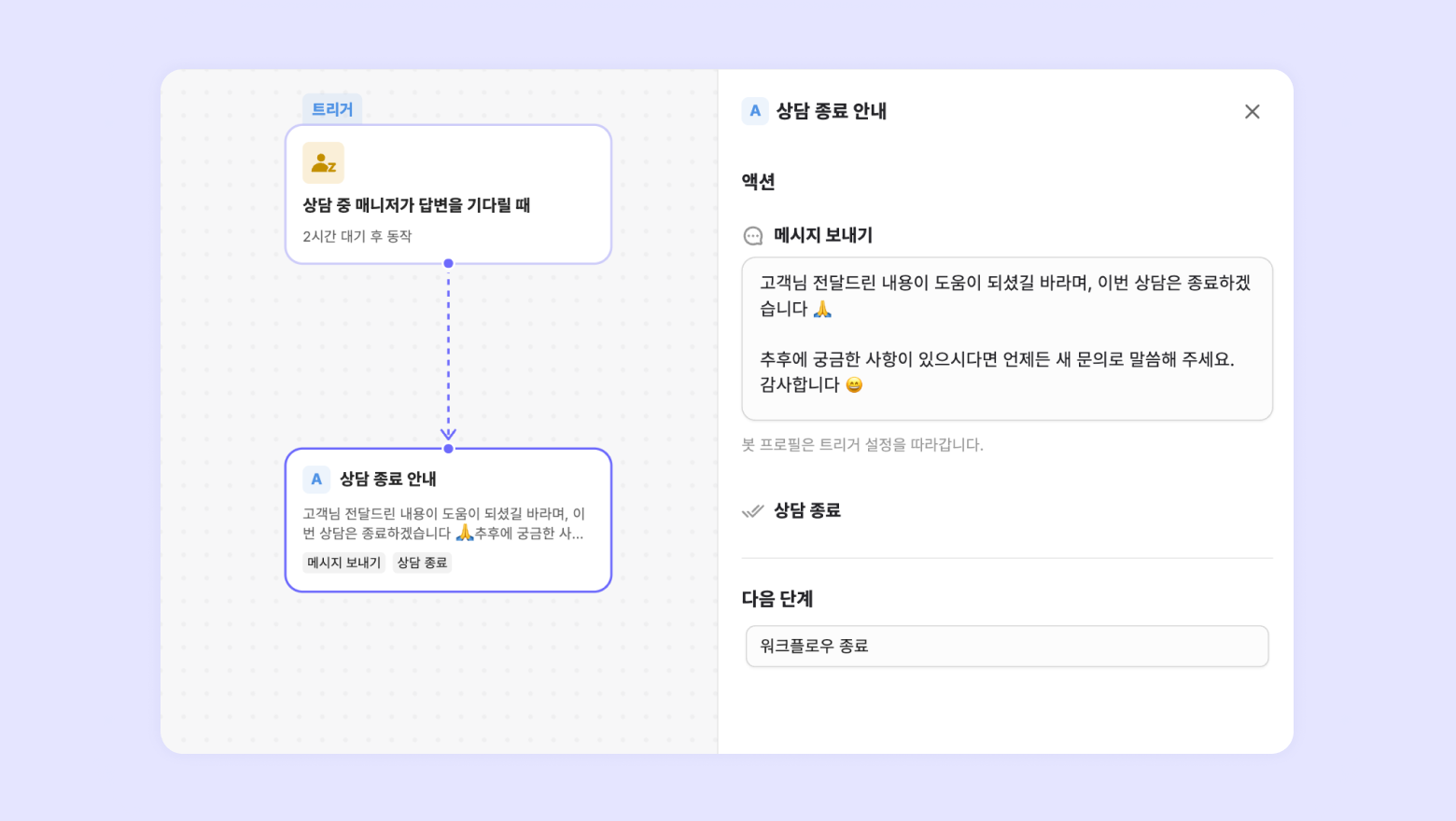 상담이 마무리 되었다면, 상담이 자동 종료되도록 설정할 수 있어요.