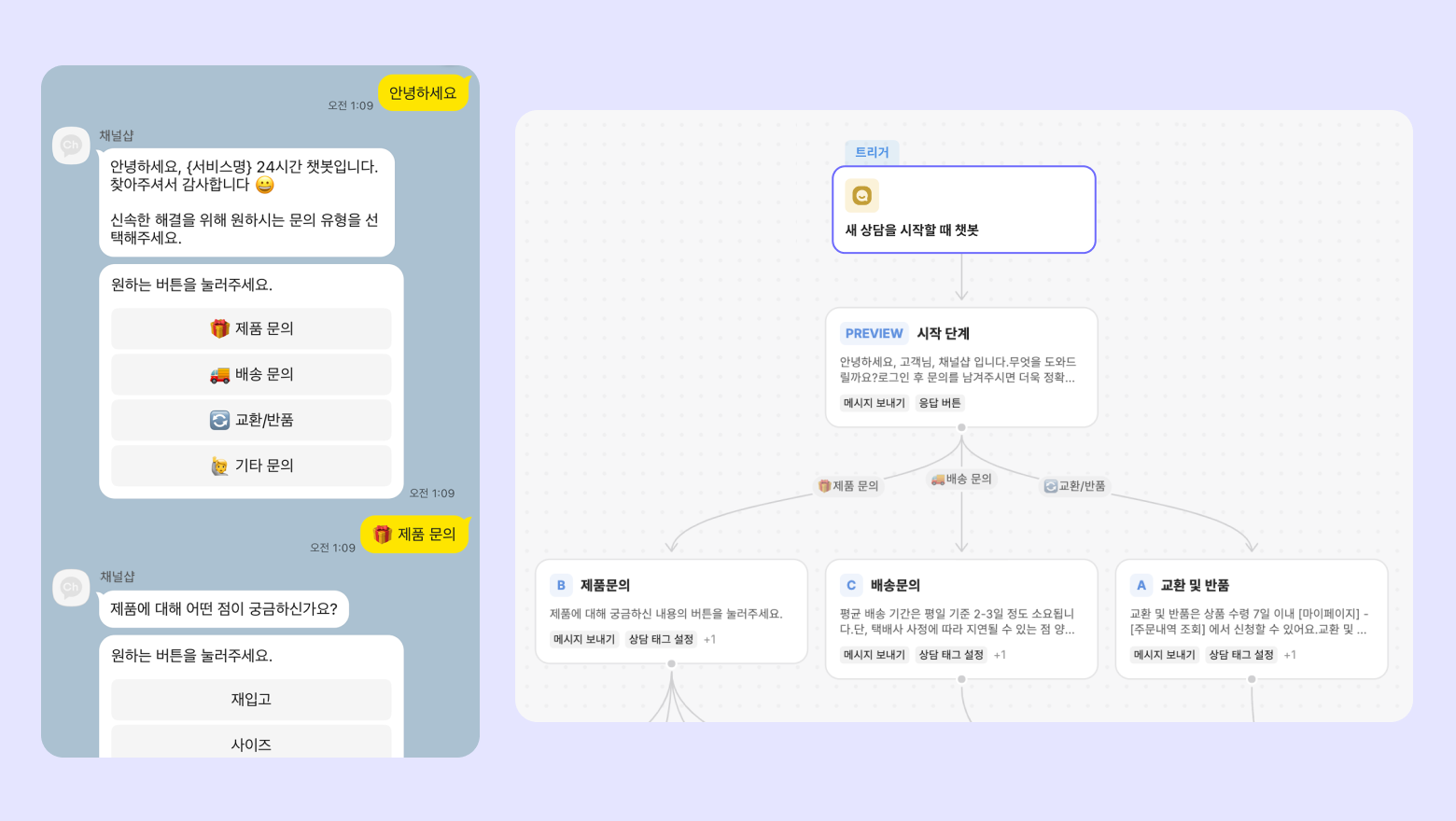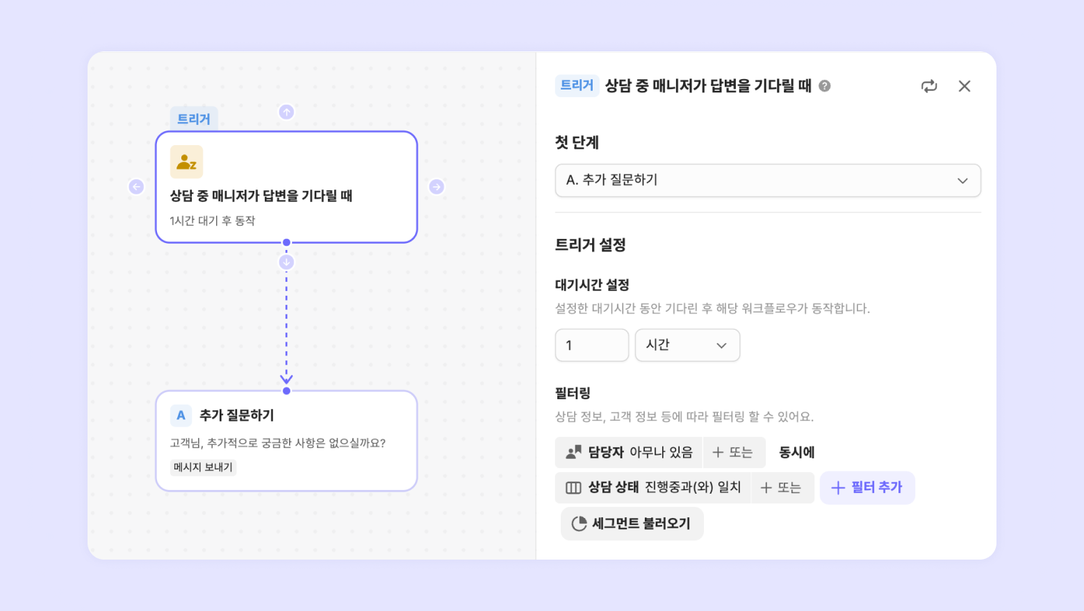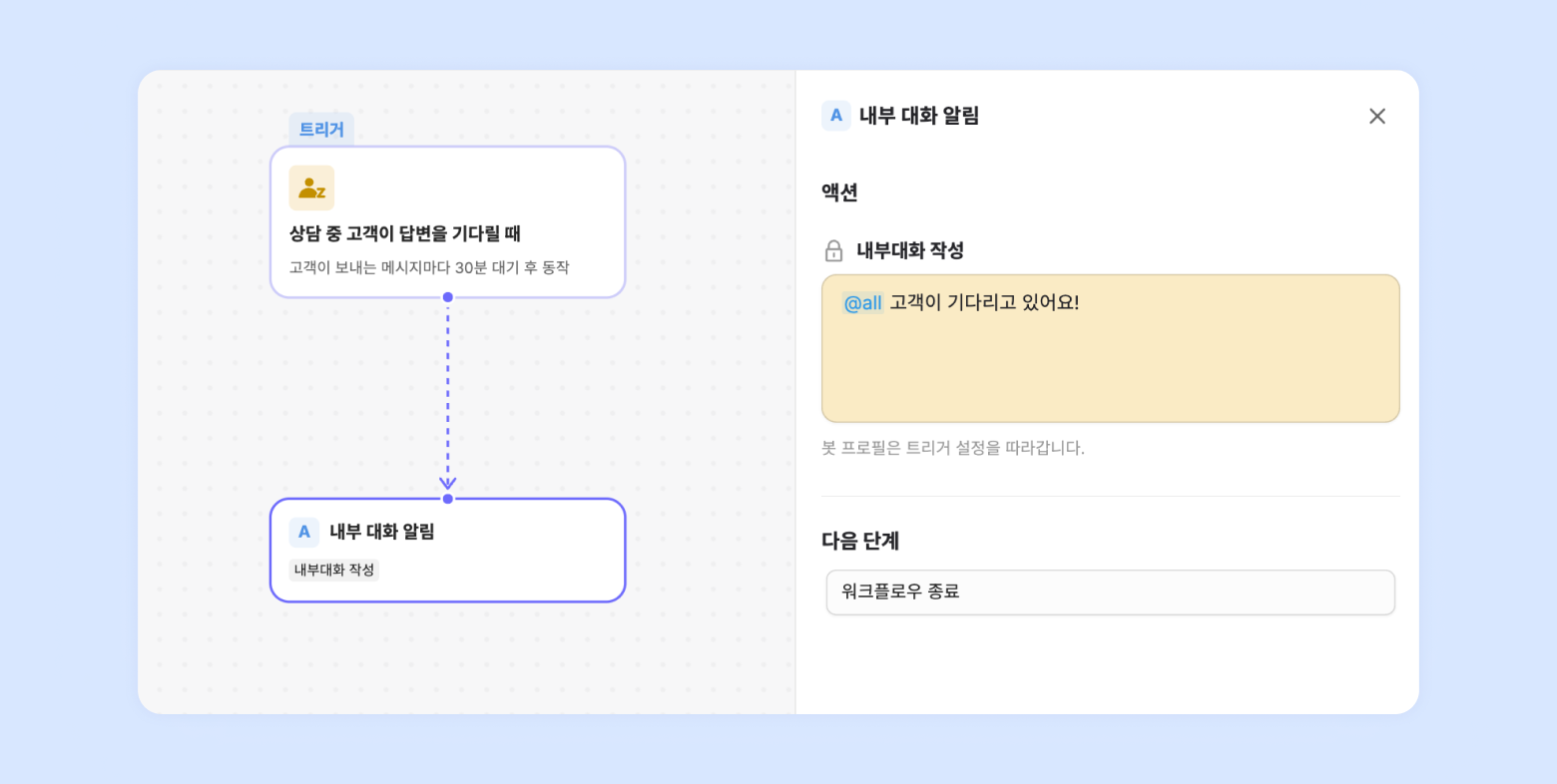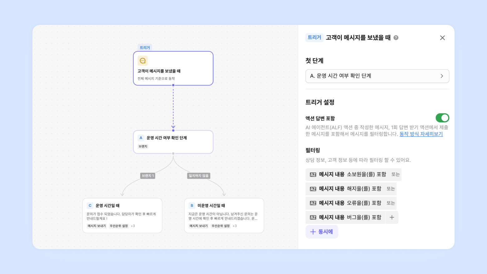 미리 정해놓은 규칙에 따라 단순 반복되는 업무를 자동으로 처리하고, 적절한 타이밍에 효과적으로 고객 맞춤 상담을 진행할 수 있어요.