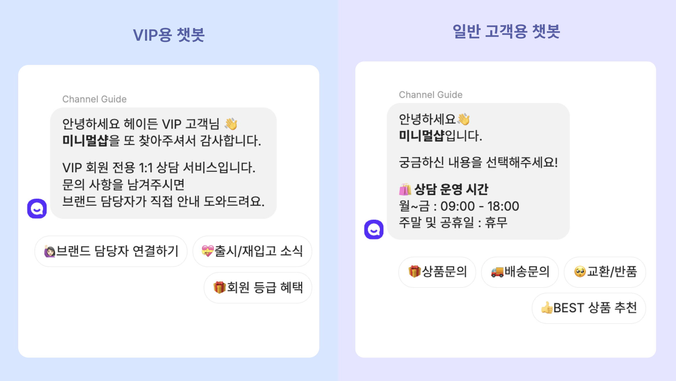 고객 등급 별 챗봇을 만들어 단골 고객들을 위한 차등화 고객 경험을 설계할 수 있어요