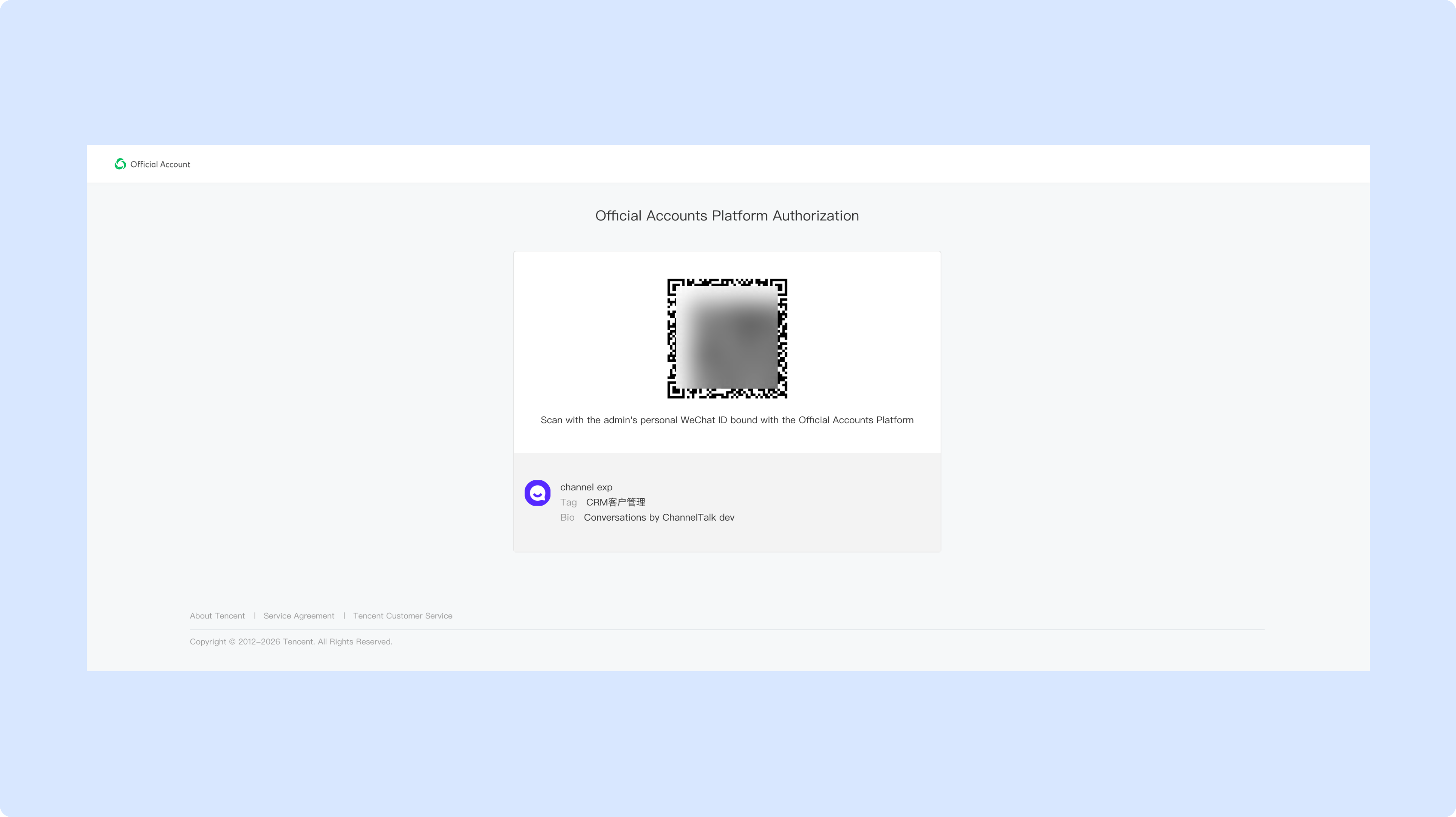 새 창으로 뜨는 QR 코드를 스캔한 후, 연동하려는 계정으로 위챗 로그인을 해주세요.