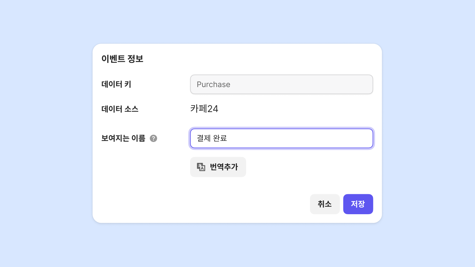 이벤트나 이벤트 속성의 보여지는 이름을 원하는 이름으로 수정할 수 있습니다.
