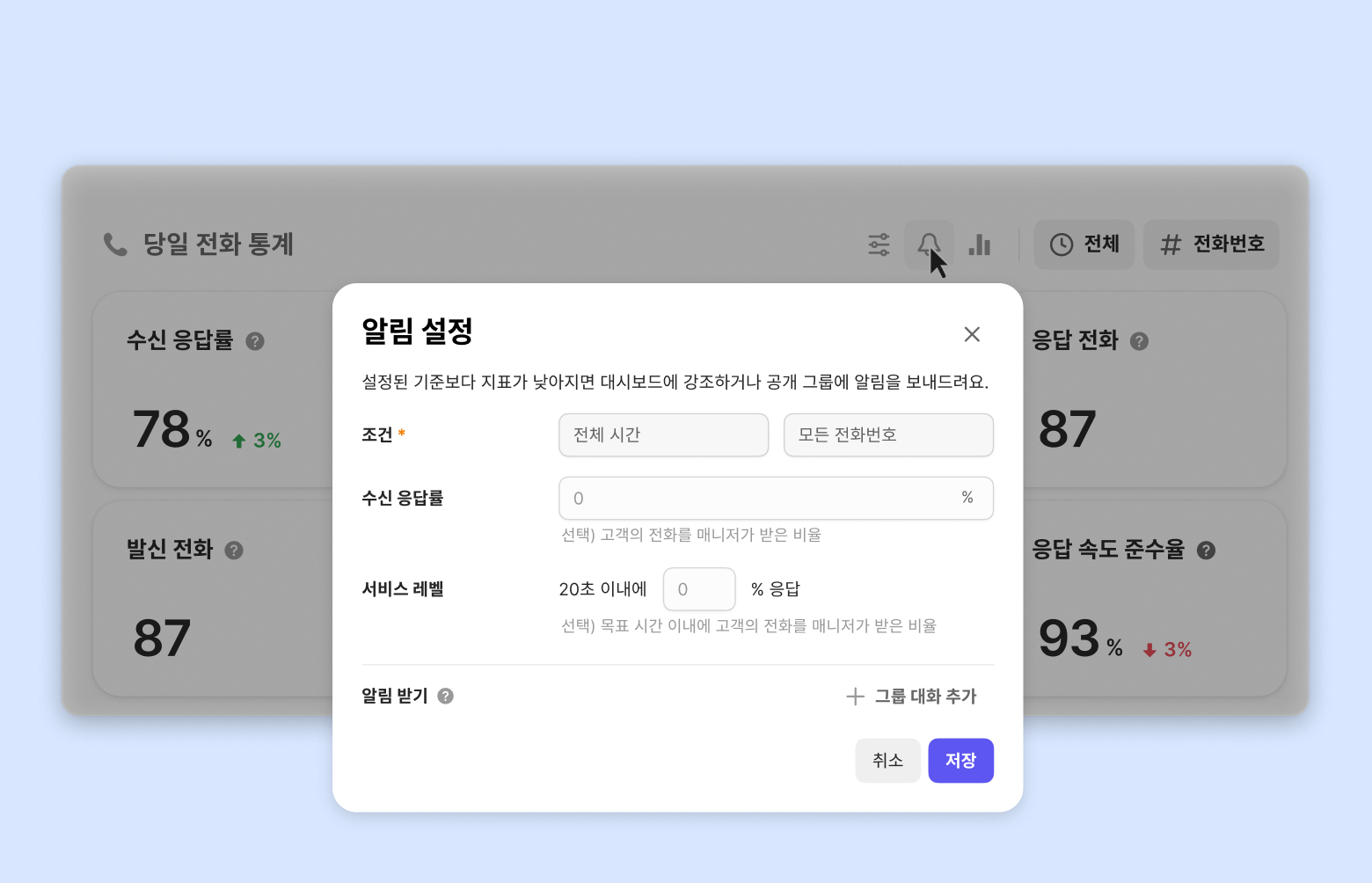수신 응답률과 서비스 레벨의 목표 수치를 정할 수 있어요