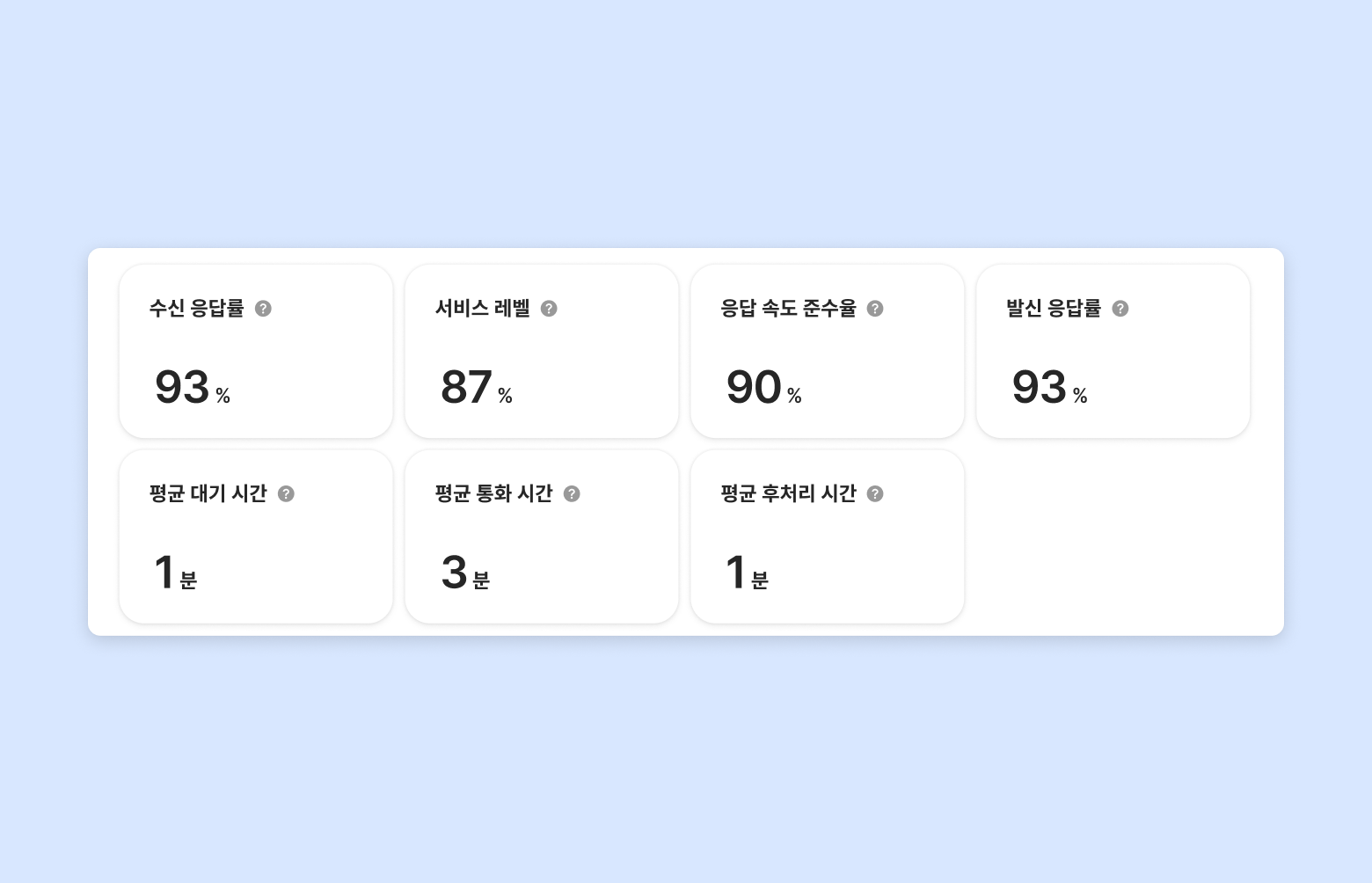 평균 대기 시간: 고객이 전화를 걸었을 때, 상담원이 전화를 받기 전까지 기다린 평균 대기 시간입니다.