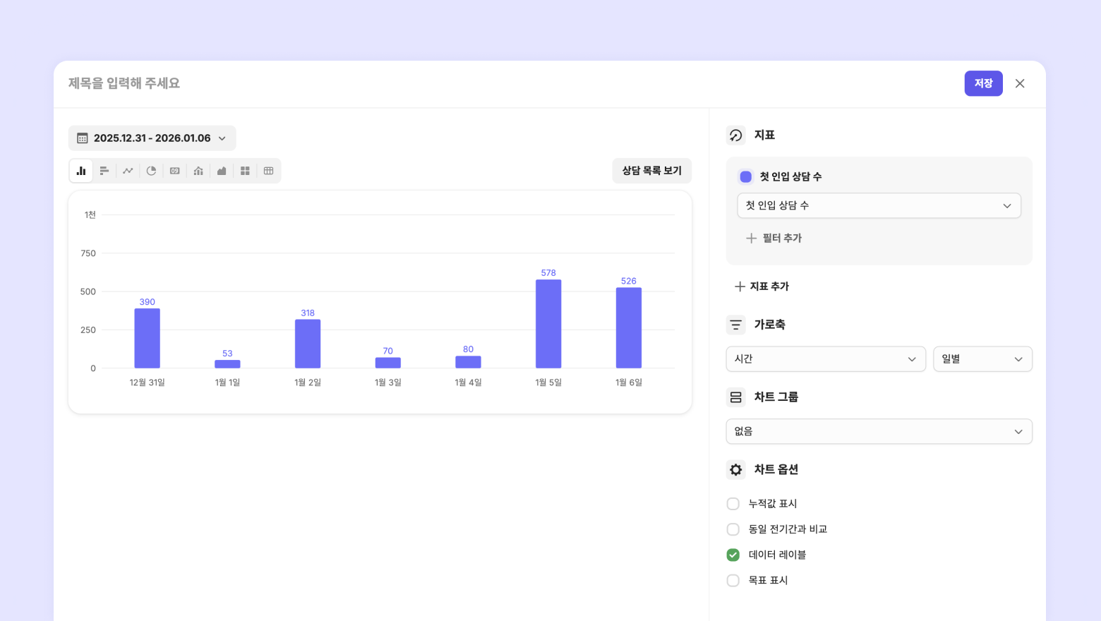 일자별 인입된 상담 수 추이 확인하기