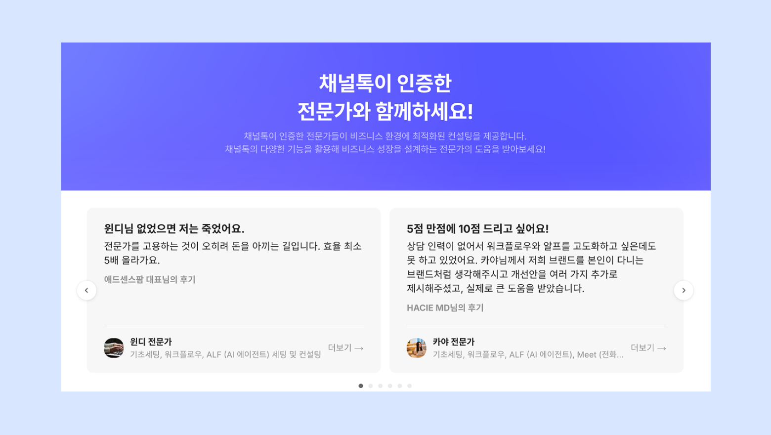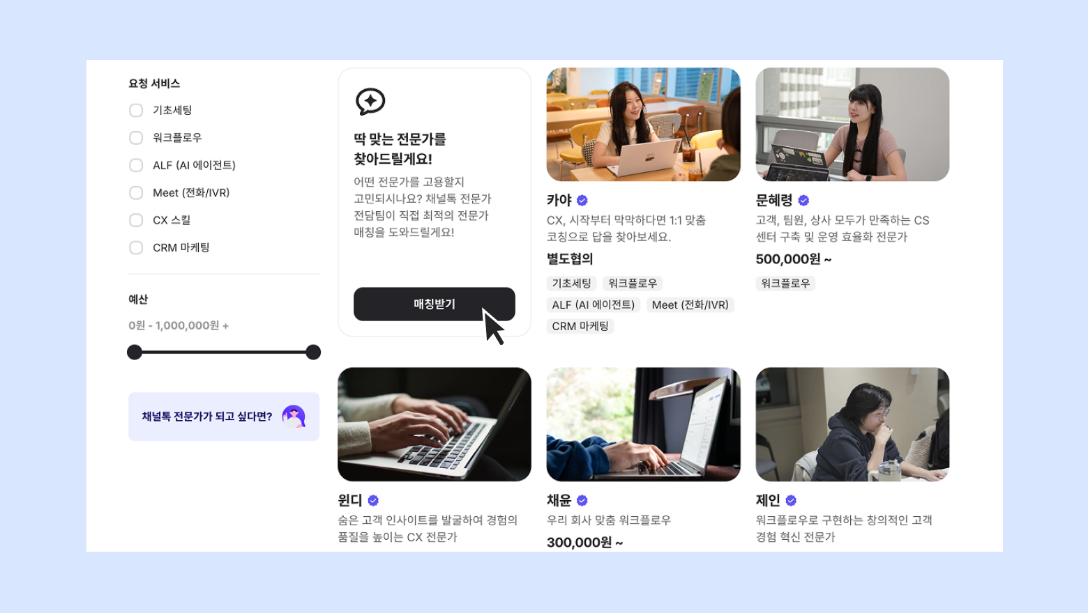 모든 전문가는 채널톡 팀이 직접 검증했습니다.
