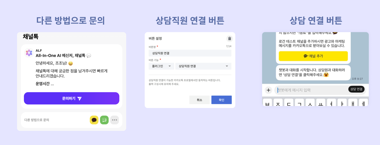 다음의 방법으로 상담 연결을 요청하면 메시지를 보내지 않아도 상담이 열립니다.