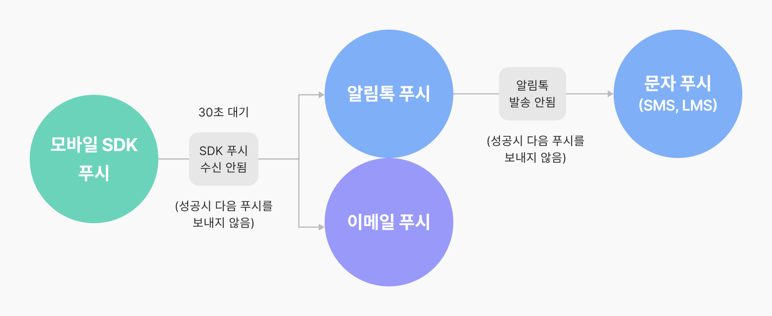 모바일 SDK 알림에 성공한 경우 문자(알림톡)/이메일 알림을 보내지 않습니다.
