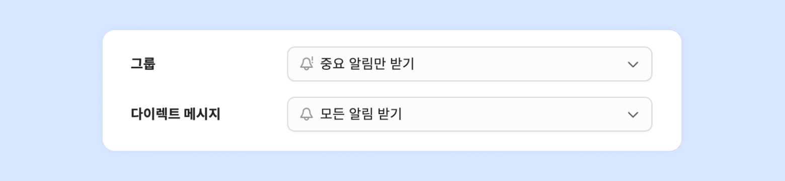 알림의 범위는 그룹 / 다이렉트 메시지(DM) 별 다르게 설정이 가능해요.