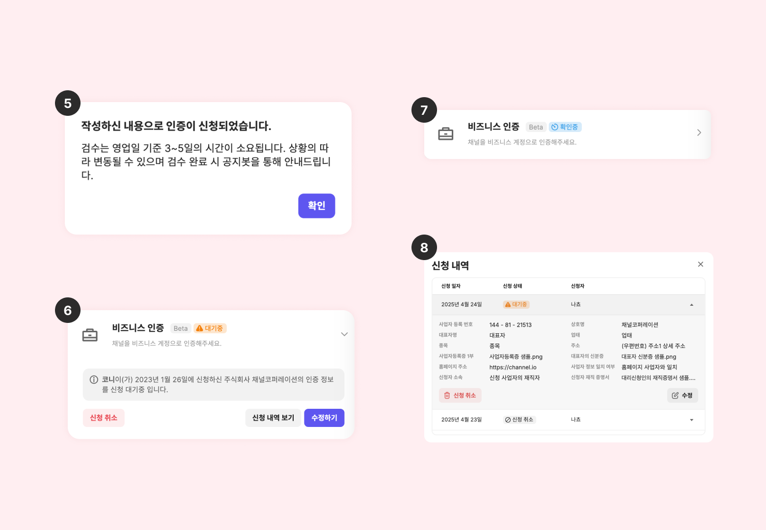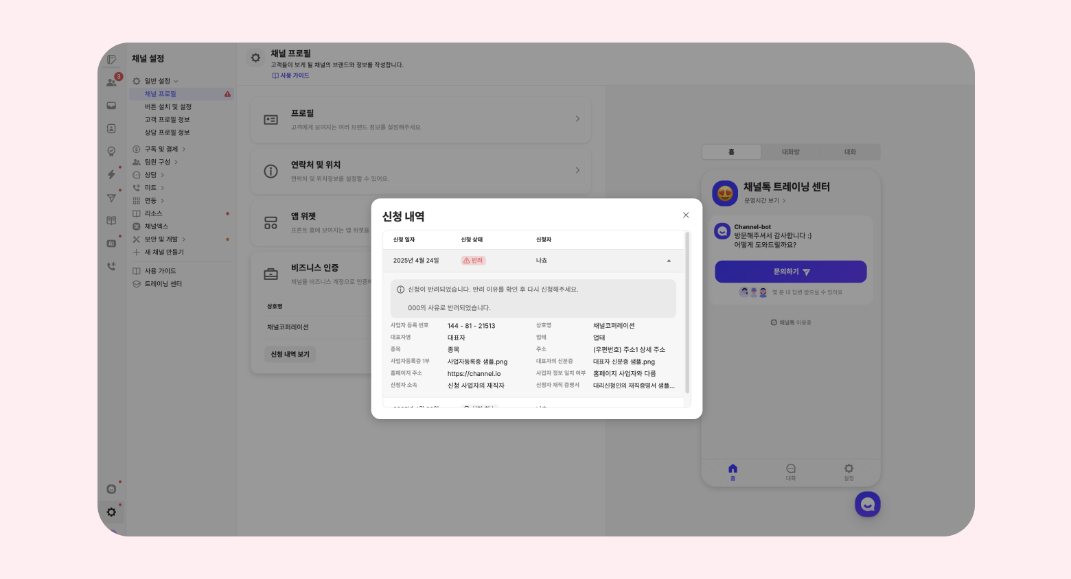 그 외 채널톡이 정한 비즈니스 인증 승인 기준에 미달되는 상황으로 판단 될 때