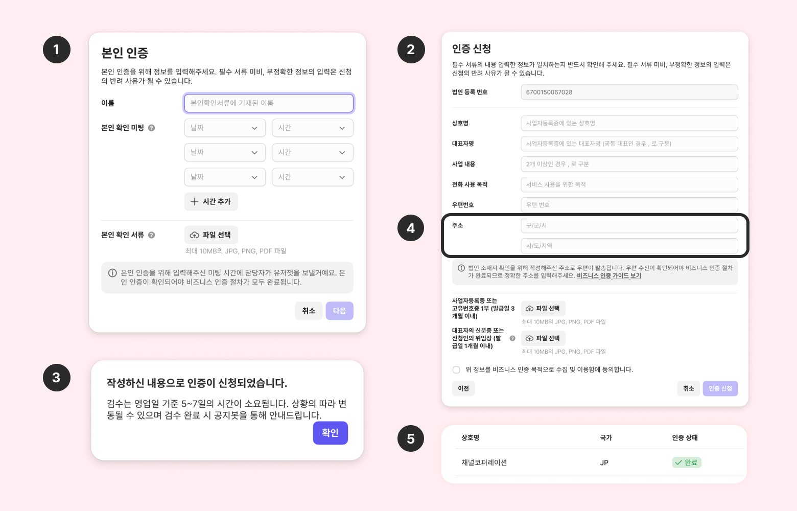 일본 비즈니스 인증 신청 정보는 반드시 일본어로 입력해 주세요. 신청 이후 본인 확인 미팅도 일본어로 진행됩니다.
