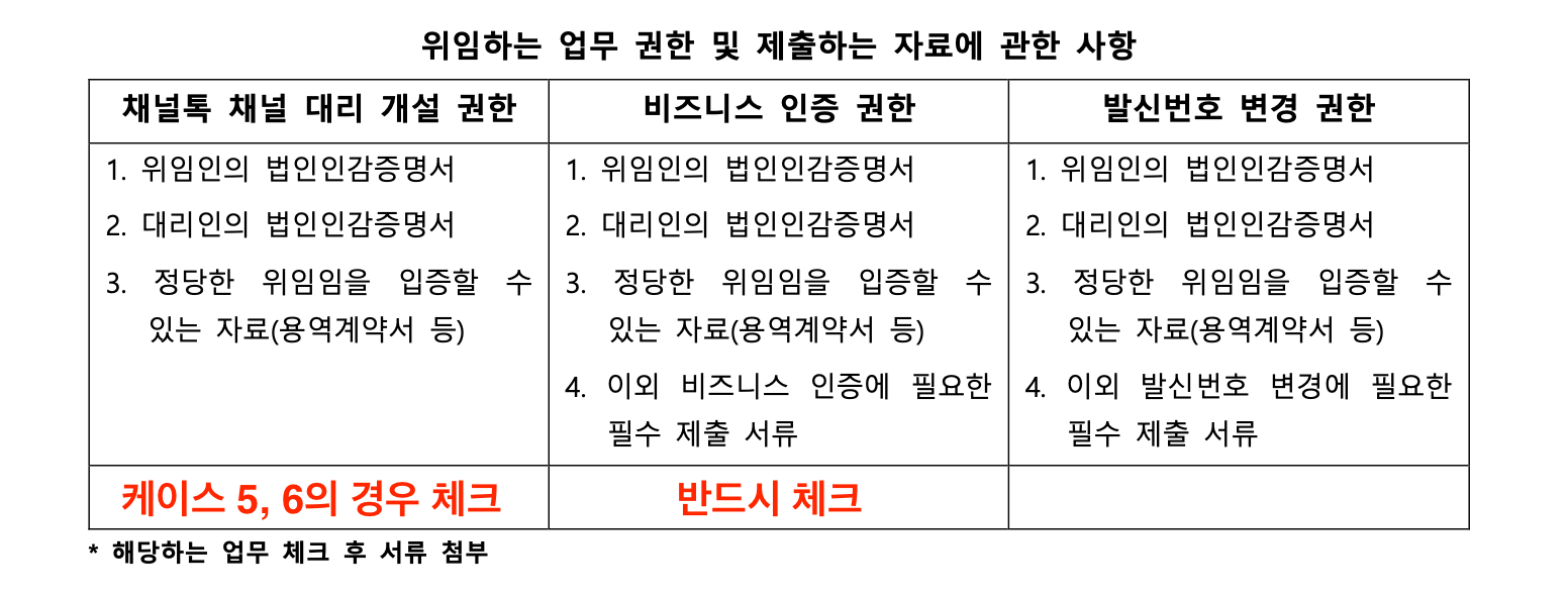 *채널톡 표준 위임장: 아래 첨부된 파일을 다운로드 하시거나, 케이스 3~6 선택 시 노출되는 "템플릿 다운로드" 버튼을 눌러 다운로드 해주세요