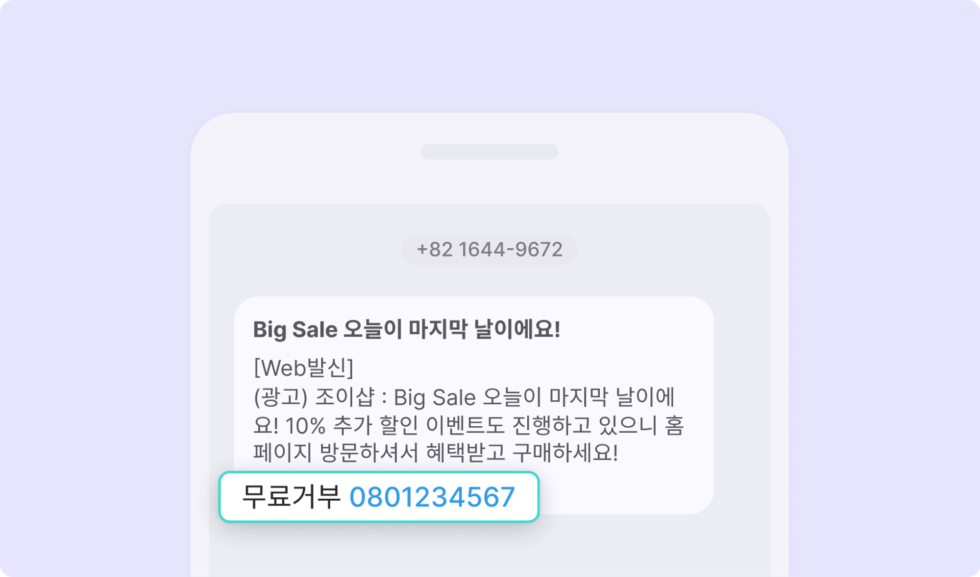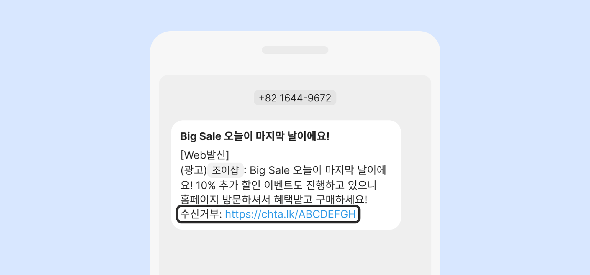• 고객이 무료로 광고성 메시지 수신 거부 처리가 가능합니다.
