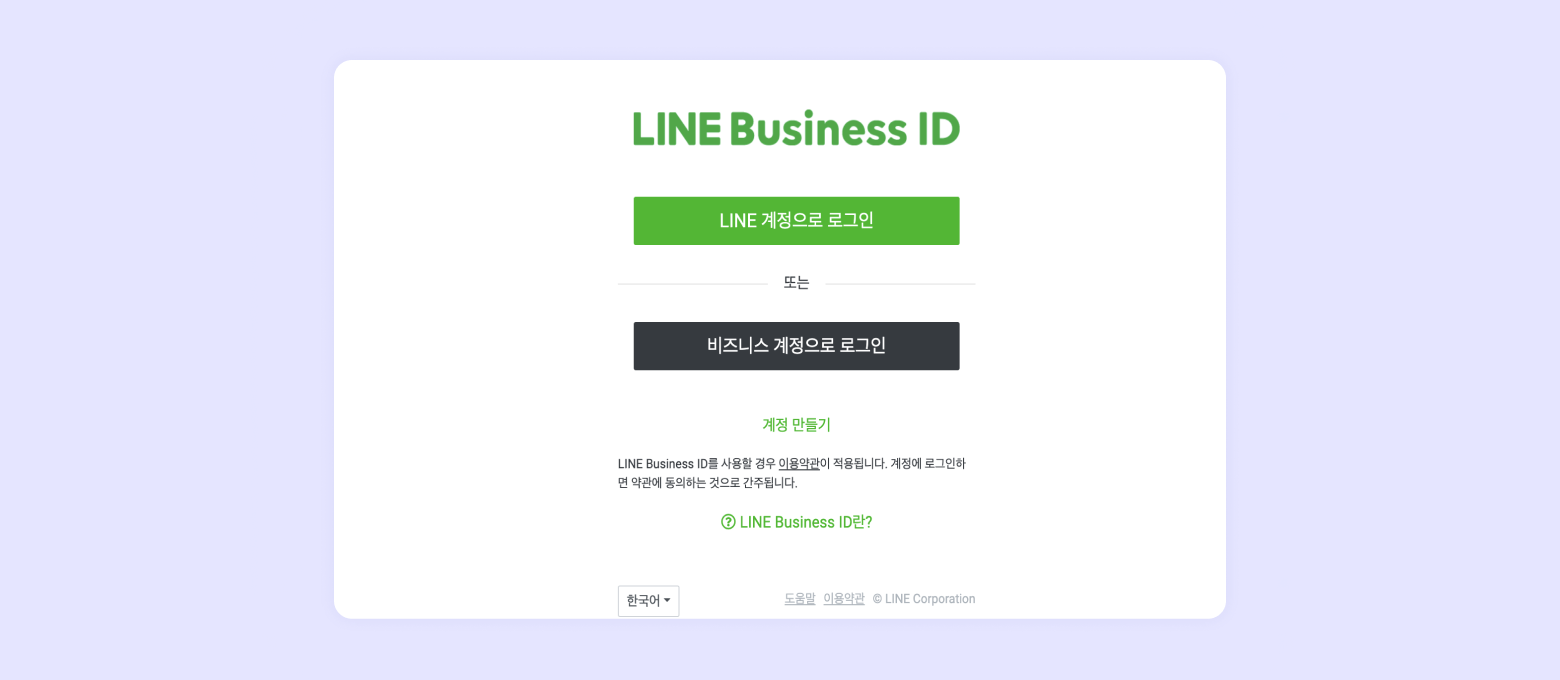 연동을 위해서는 라인 공식 계정 등록이 필요합니다.