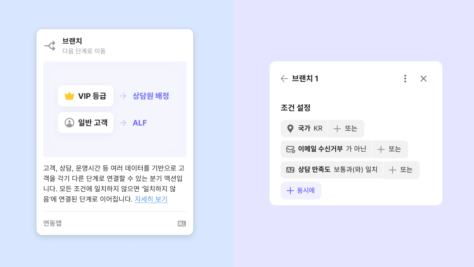 고객 태그가 VIP라면 VIP팀이 자동으로 배정되고, 아니라면 그냥 넘어감