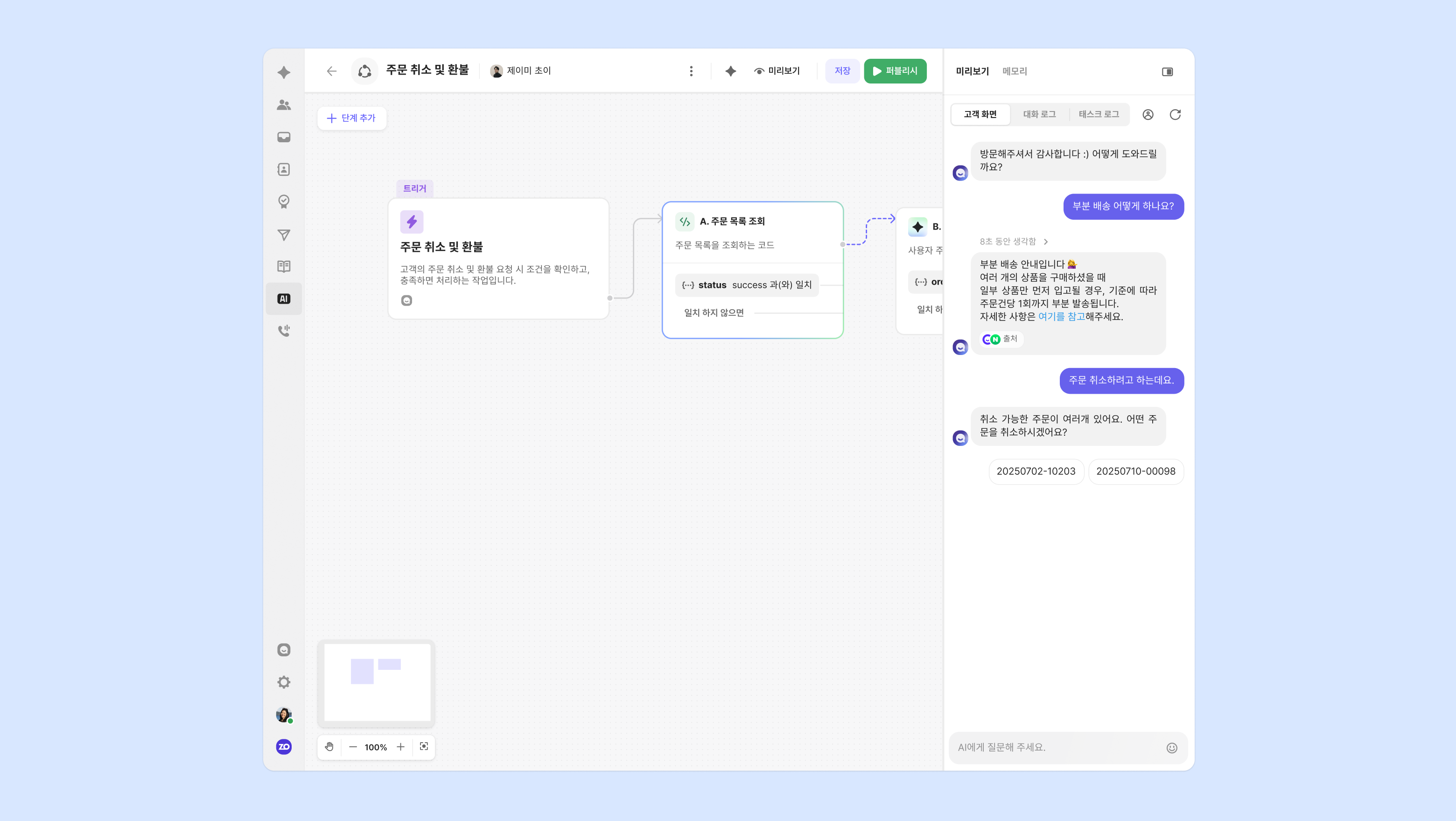 예를 들어 고객이 “주문을 취소하고 싶어요”라고 말하면, 단순히 방법을 안내하는 데서 끝나는 것이 아니라 실제로 취소 처리, 반품 접수, 예약 변경 같은 일을 바로 진행할 수 있습니다.