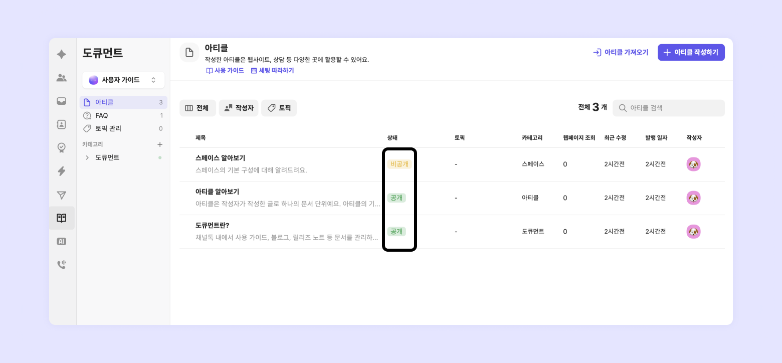 [도큐먼트] - [아티클(또는 FAQ)]에서 참조할 아티클(또는 FAQ)의 상태를 확인해 주세요.